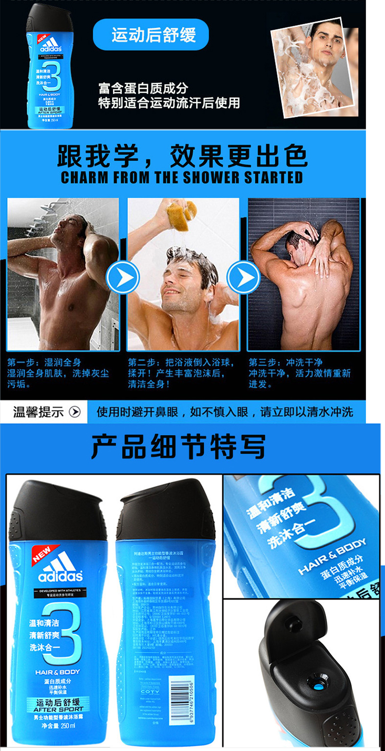 阿迪达斯 男士功能型香波沐浴露—运动后舒缓250ml
