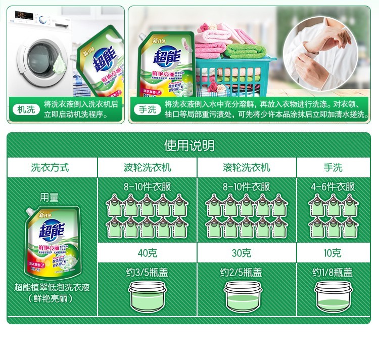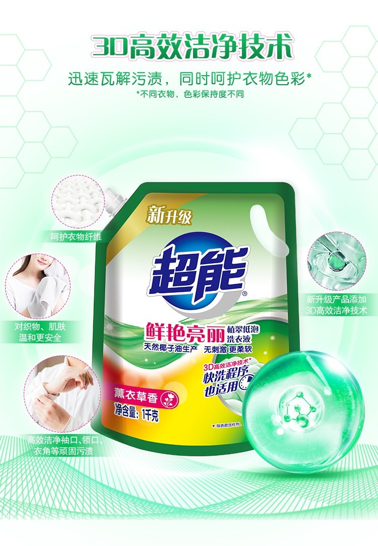 超能 植翠洗衣液2袋装(鲜艳亮丽)1kg*2