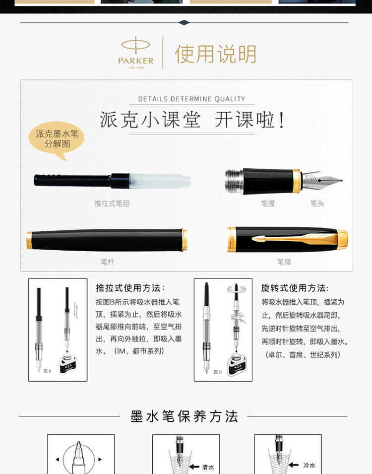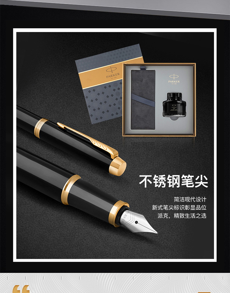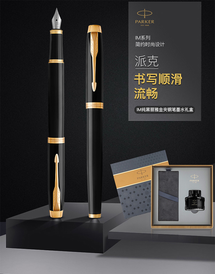 派克 新款墨水礼盒套装(派克新款IM纯黑丽雅金夹墨水笔+墨水礼盒套装)