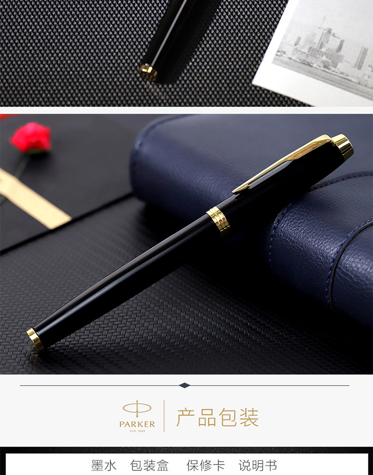 商品型号:派克新款IM纯黑丽雅金夹墨水笔+墨水礼盒套装