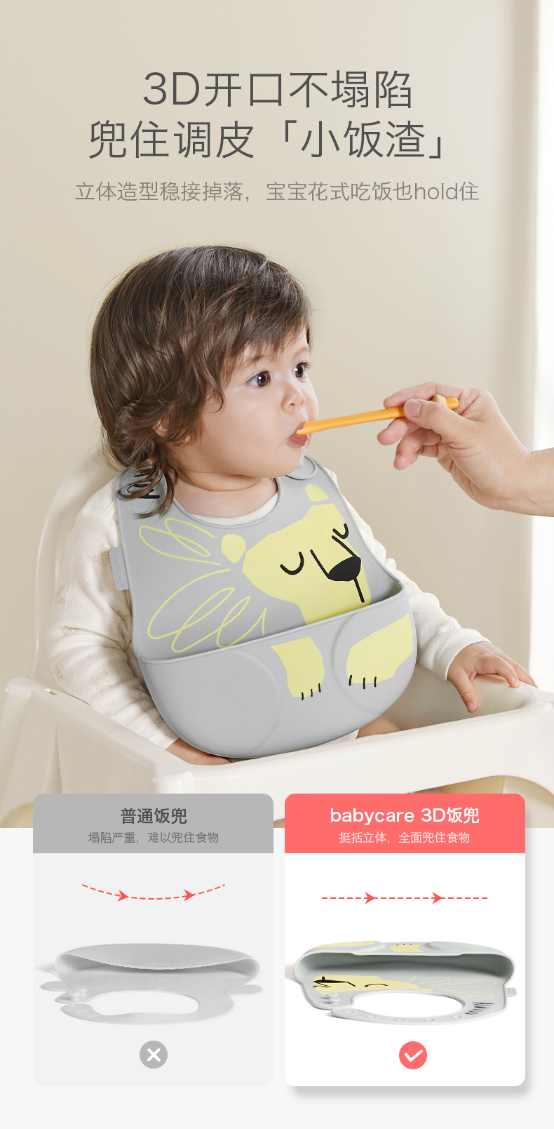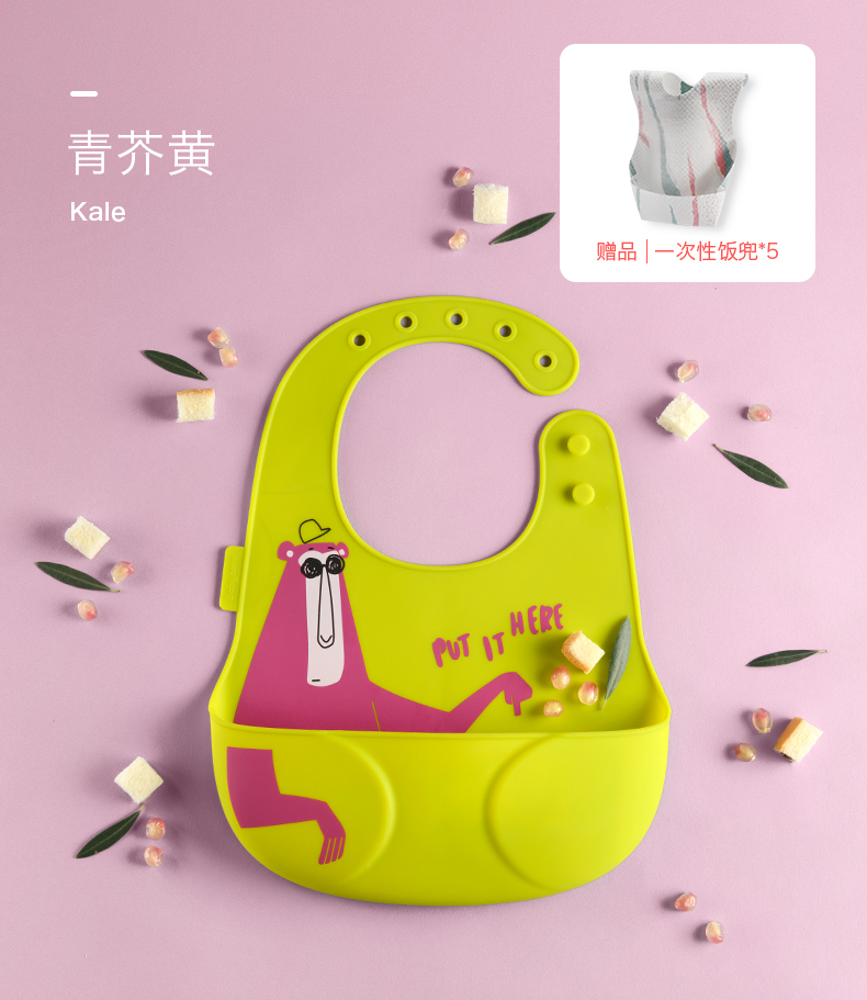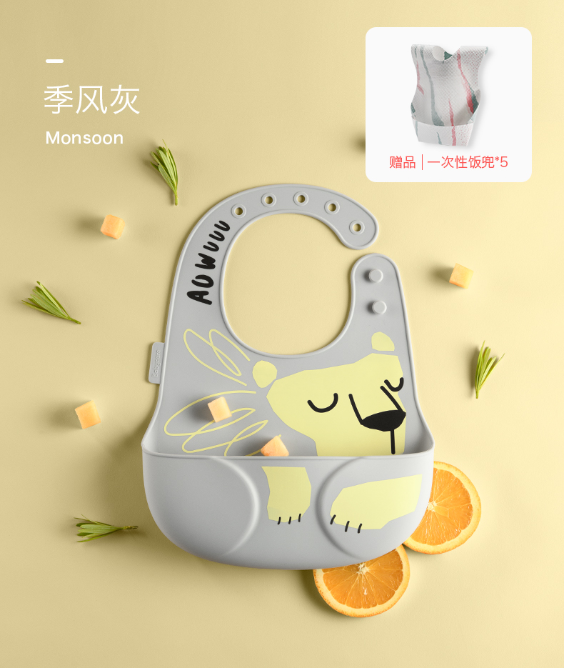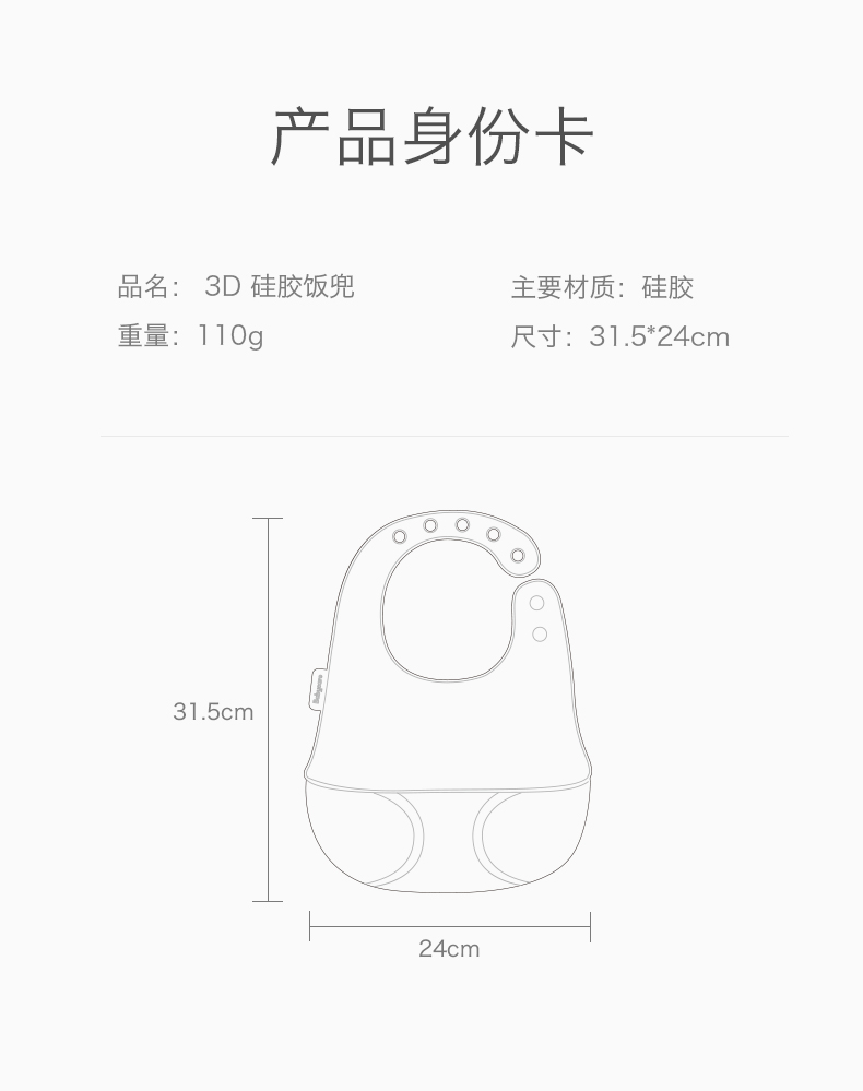 babycare 3D硅胶饭兜-31.5*24cm-辛得白