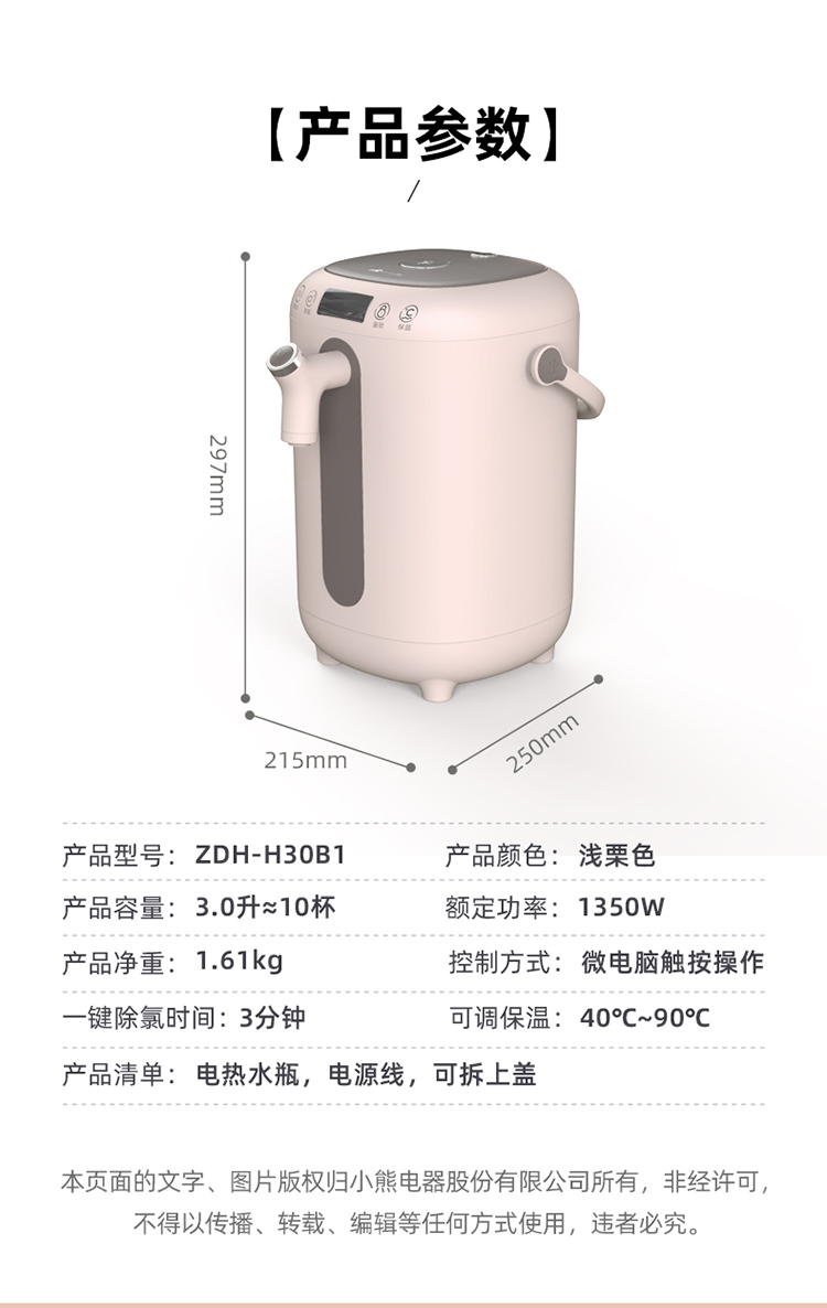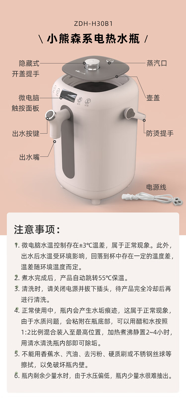 小熊(Bear)多段保温电热水瓶3L ZDH-H30B1