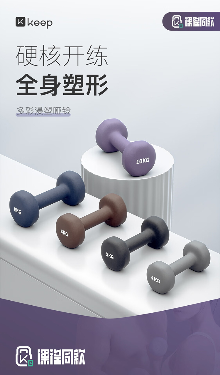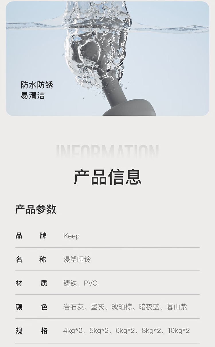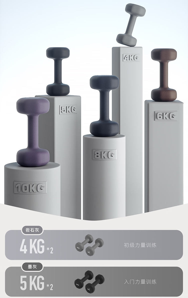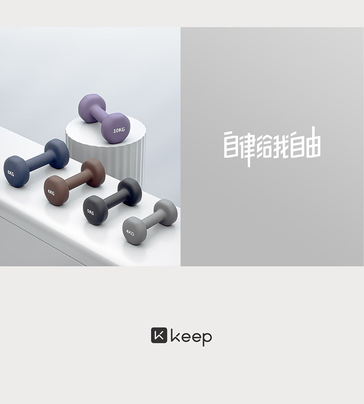 keep 彩色浸塑哑铃 墨灰 5kg*2