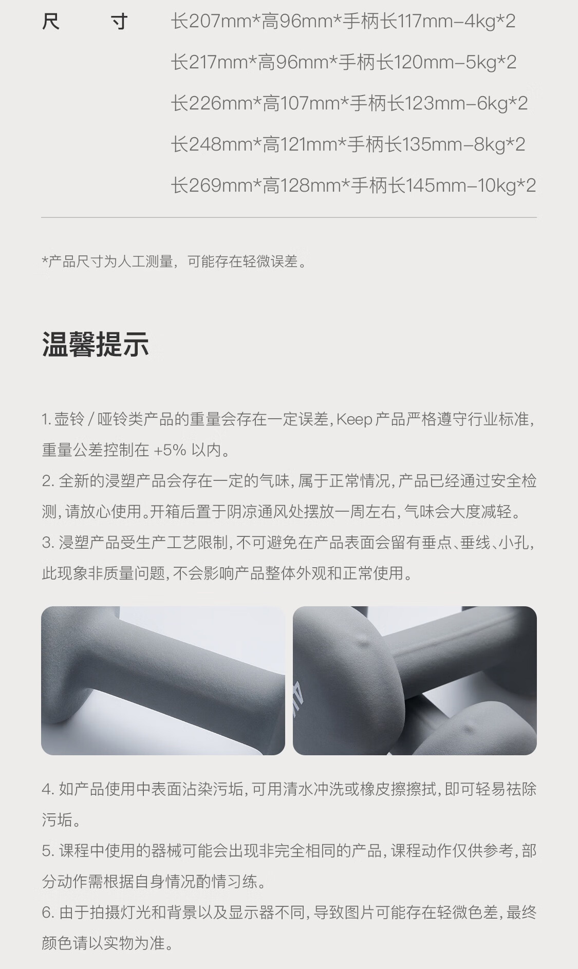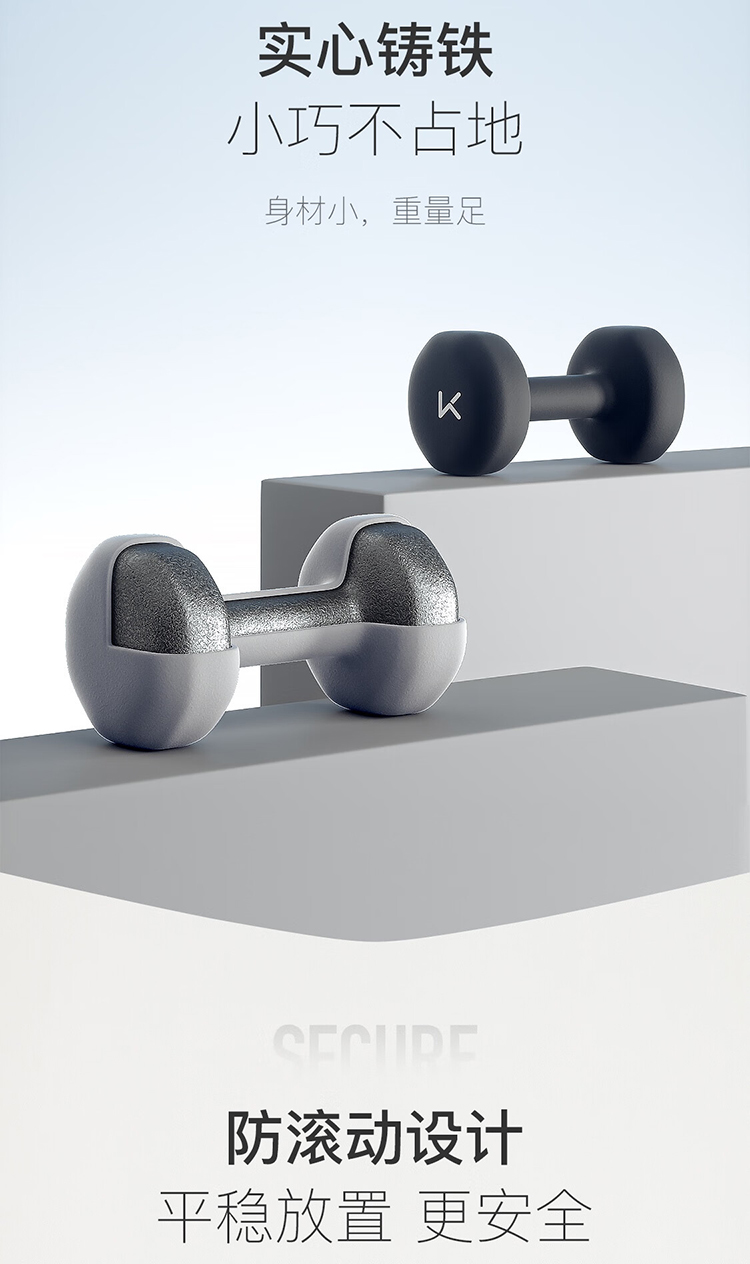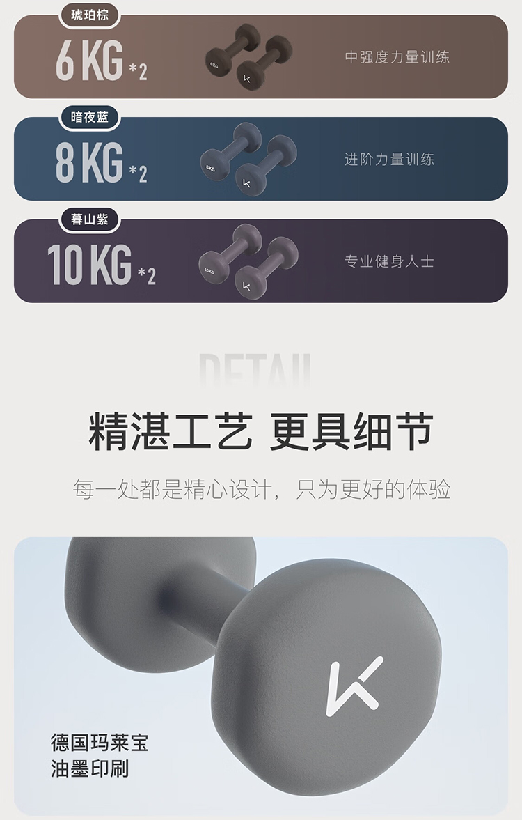 keep 彩色浸塑哑铃 墨灰 5kg*2
