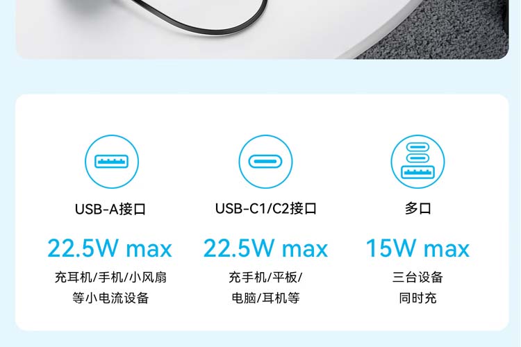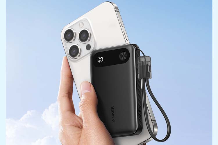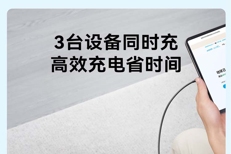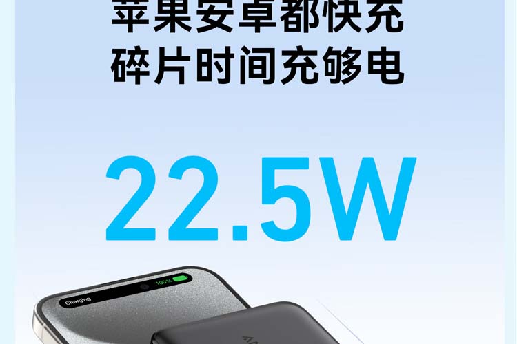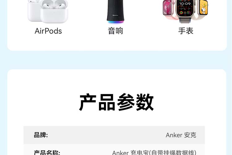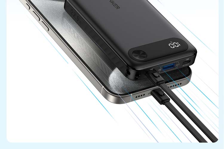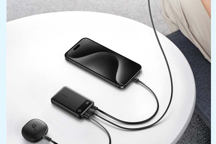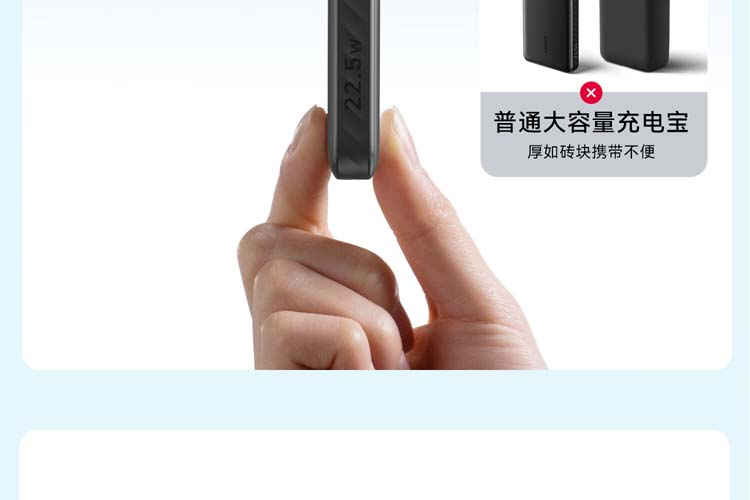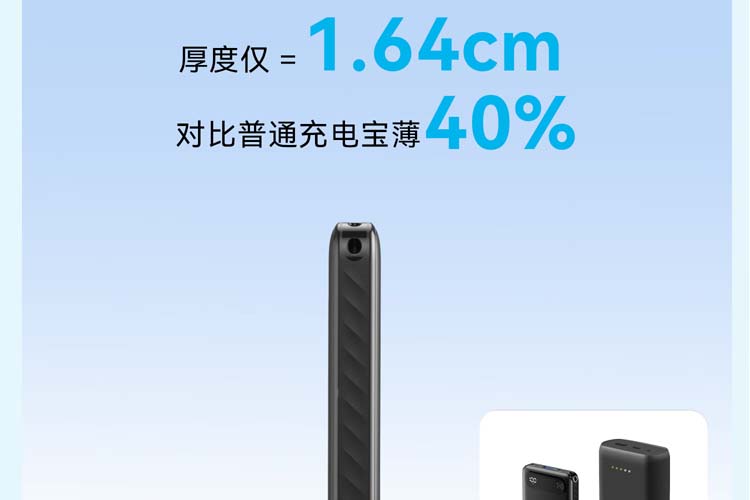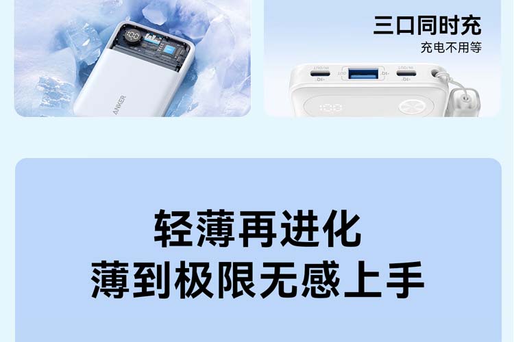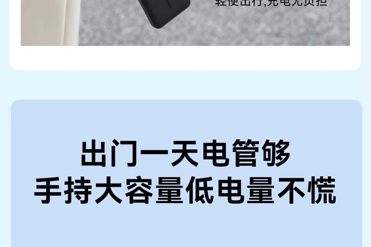 安克 10000毫安时 自带线充电宝 大容量移动电源挂绳数据线轻薄小巧可上飞机 A1257黑色