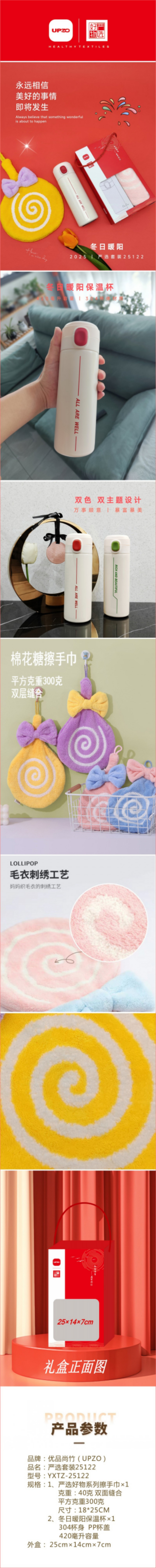 优品尚竹(UPZO)严选擦手巾保温杯套装 YXTZ-25122 颜色随机