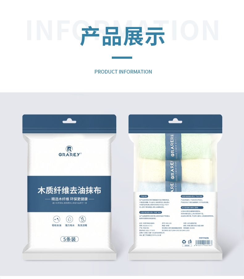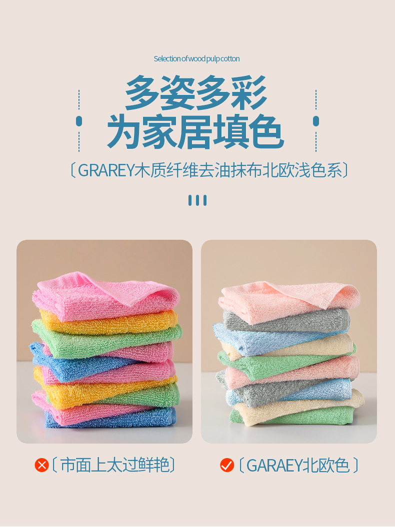 GRAREY 木质纤维去油抹布5条/包(颜色随机)6975217180163